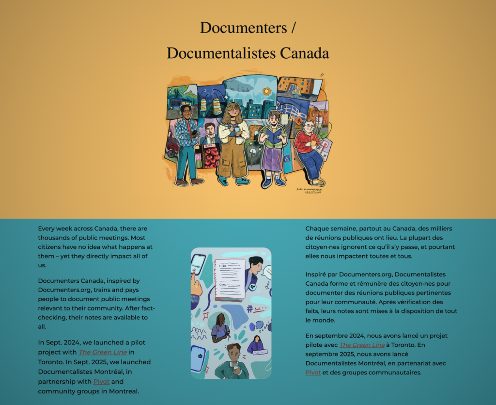 It’s meant to be a way of ensuring that all municipal governments get adequate attention. Documenters Canada, inspired by a program in the U.S., launched a pilot project in September 2024 with The Green Line in Toronto.