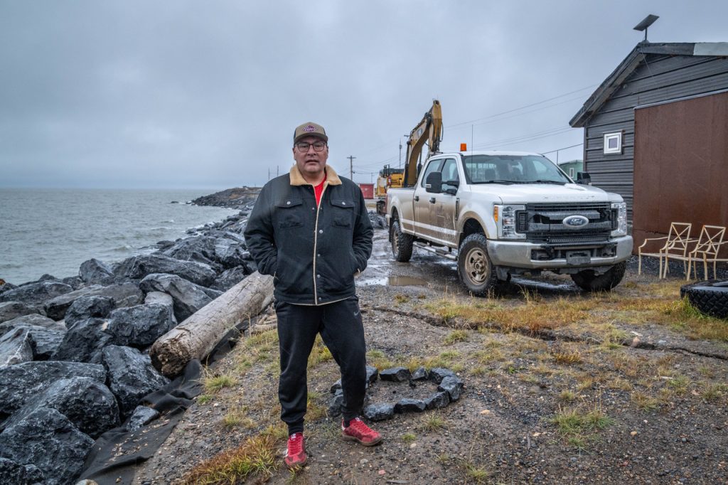 Look at the conundrum Ryan Yakeleya’s family faces, for example. You’ll find his house on Beaufort Road, out near the point, just shy of the Arctic Ocean sign that so many visitors come to take a picture of. The Inuvialuktun name for this place is Nuuvuraluuk. Yakaleya’s house is the last one standing on the western side of this stretch of land. In 2020, the hamlet moved the three homes of his neighbours about nine kilometres to the south, to a place called Reindeer Point. Sitting at his kitchen table, just a few metres from the water’s edge, Yakaleya told me that the hamlet had offered to move his house, too, but he declined. He didn’t think things were quite that bad yet, and he had the means to move his house himself, if and when the time came.