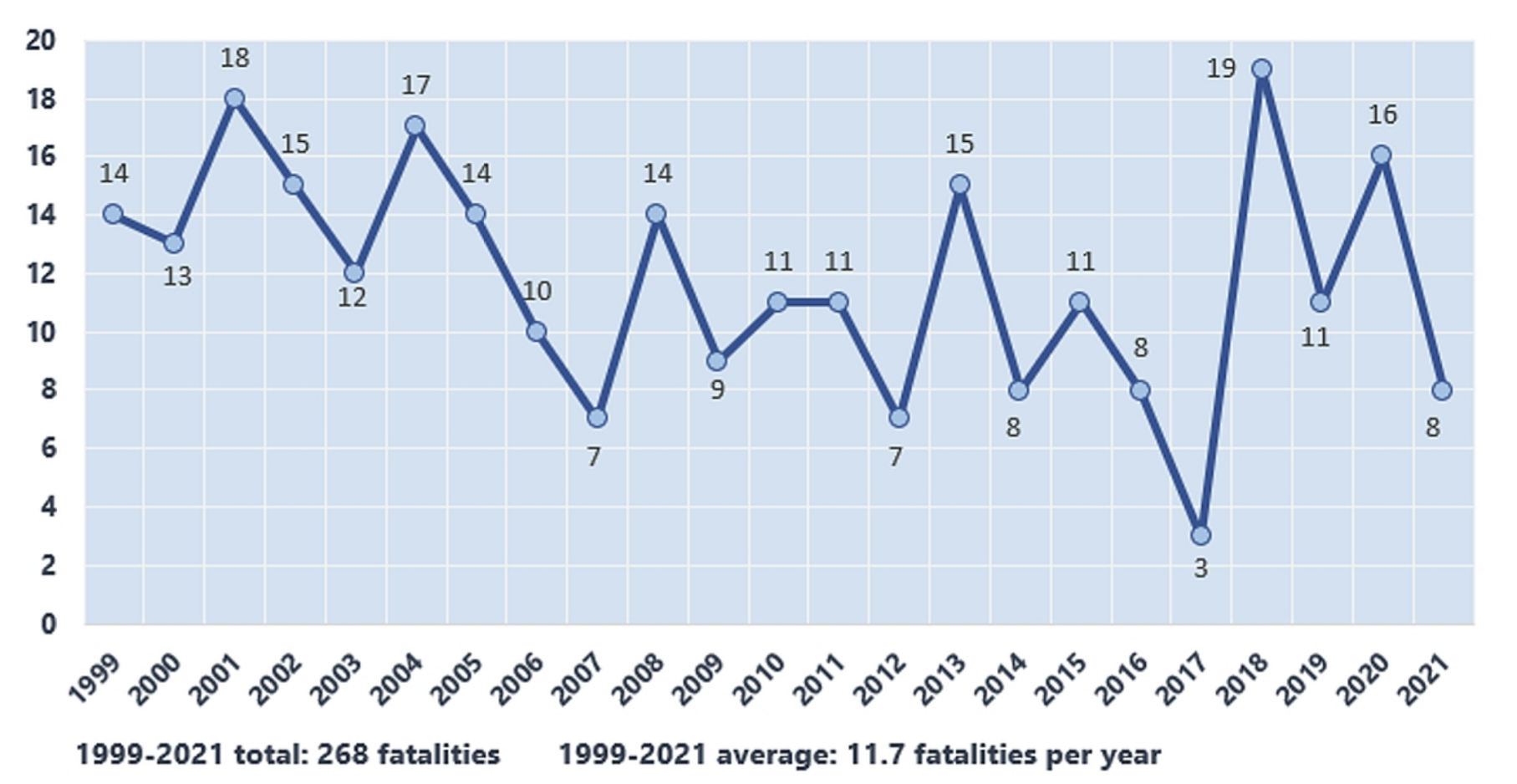 “Fatalities were higher than average in 2020 and 2021,” says Fields, which made the averages (both ending in 2022) higher than the previously-reported period.