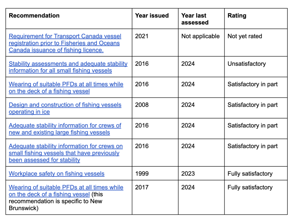 The TSB cites inadequate regulatory oversight as an issue. Transport Canada’s Fishing Vessel Safety Regulations have been in place since 2017, and the Navigation Safety Regulations, 2020 since 2021.