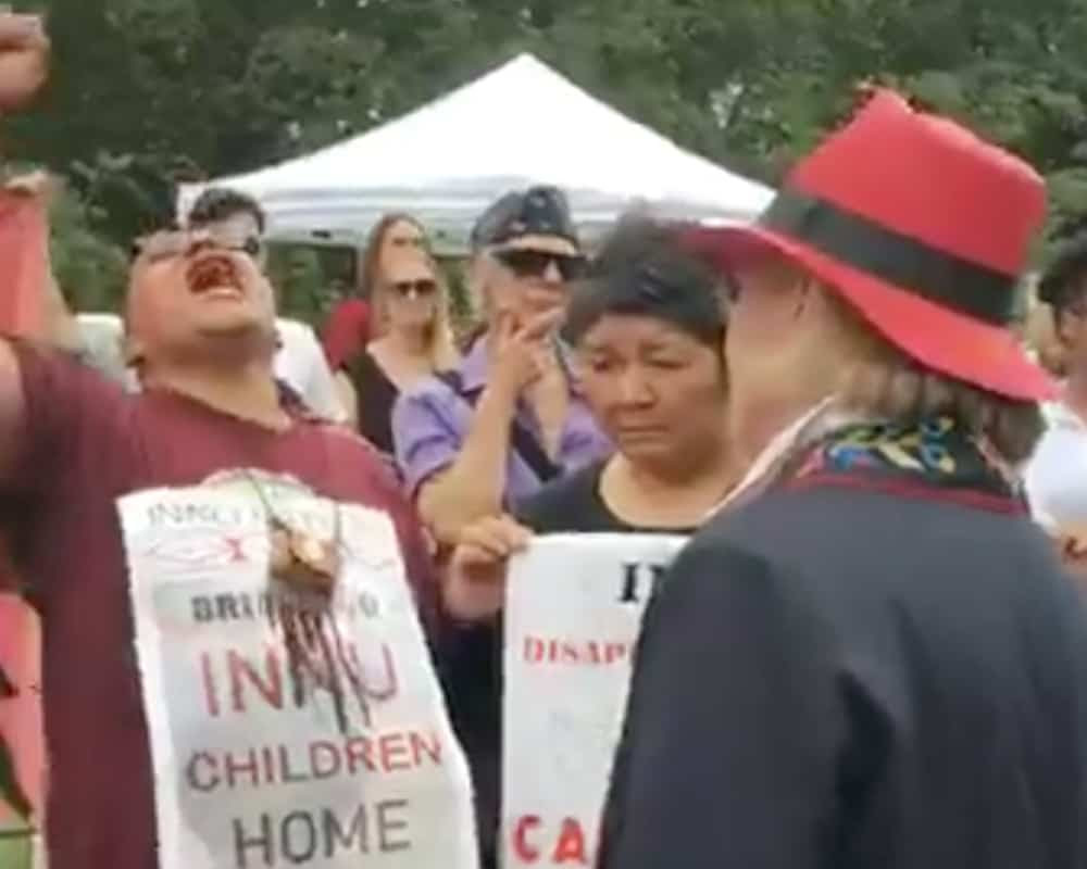 Tshakapesh pleaded with Bennett in front of onlookers, with other Innu leaders at his side. “Stop stealing our children! Stop it!” he shouted. “Something gotta end. We can’t keep burying our own.