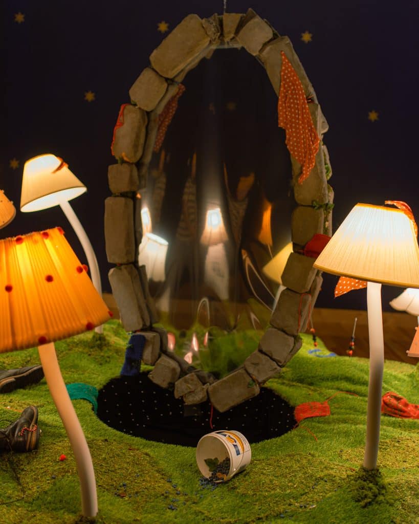 NICHOLAS AIDEN: I want people to see each other. I want to see people see each other, and I want to see myself in other people. And I want to have other people see myself in them. That’s what this mirror is about. You can try and find yourself within it. It’s a space I’ve made, it’s really a self-portrait in a sense with all of the objects that are important to me and the clothing and the time that I spent to make this.