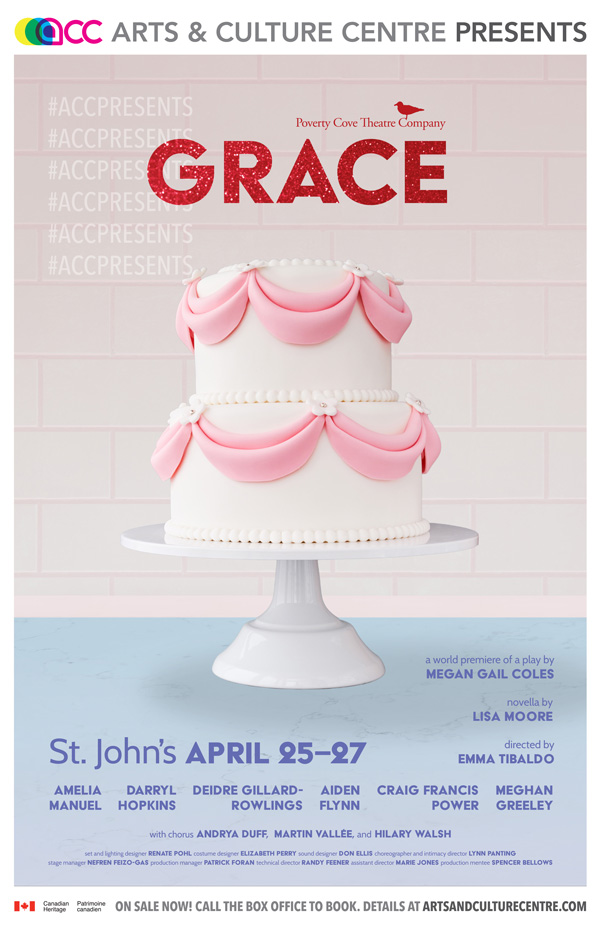 “It is a beautiful thing for a group of people to get together and make something for everyone else to watch,” says Megan Gail Coles. Coles is the artistic director and co-founder of Poverty Cove Theatre Company, and an award-winning writer of plays, screenplays, poetry, and prose. The beautiful thing at hand is Grace; it opens today for a short run at the Arts and Culture Centre in St. John’s.