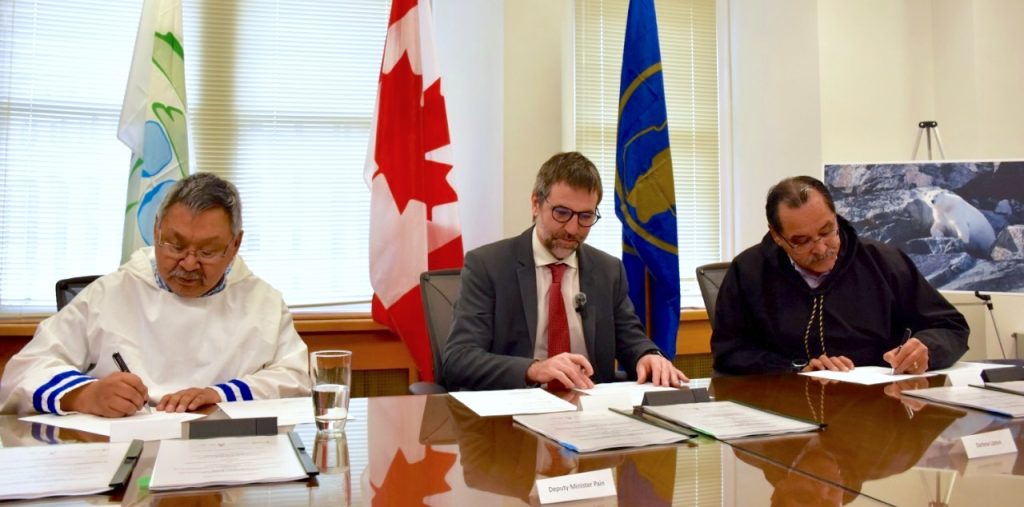 Lampe was one of three signatories to the agreement, which was also signed by Pita Aatami, president of Makivvik, and Steven Guilbeault, Minister of Environment and Climate Change and Minister responsible for Parks Canada.