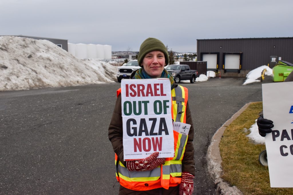 About a dozen peace activists blockaded the parking lot of Kraken Robotics in Mount Pearl Thursday morning, where they gathered to protest the company’s affiliation with an Israeli weapons manufacturer.