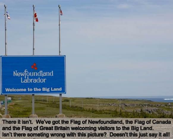 In one Labrador Facebook group Monday people were speculating over who removed the flags, and on Monday afternoon Labrador West MHA and the Minister responsible for Labrador and Aboriginal Affairs, Nick McGrath, confirmed that the government had taken them down, saying the sign had been “defaced”. The provincial flag, the Canada flag, and the British flag all fly above the government’s welcome sign.