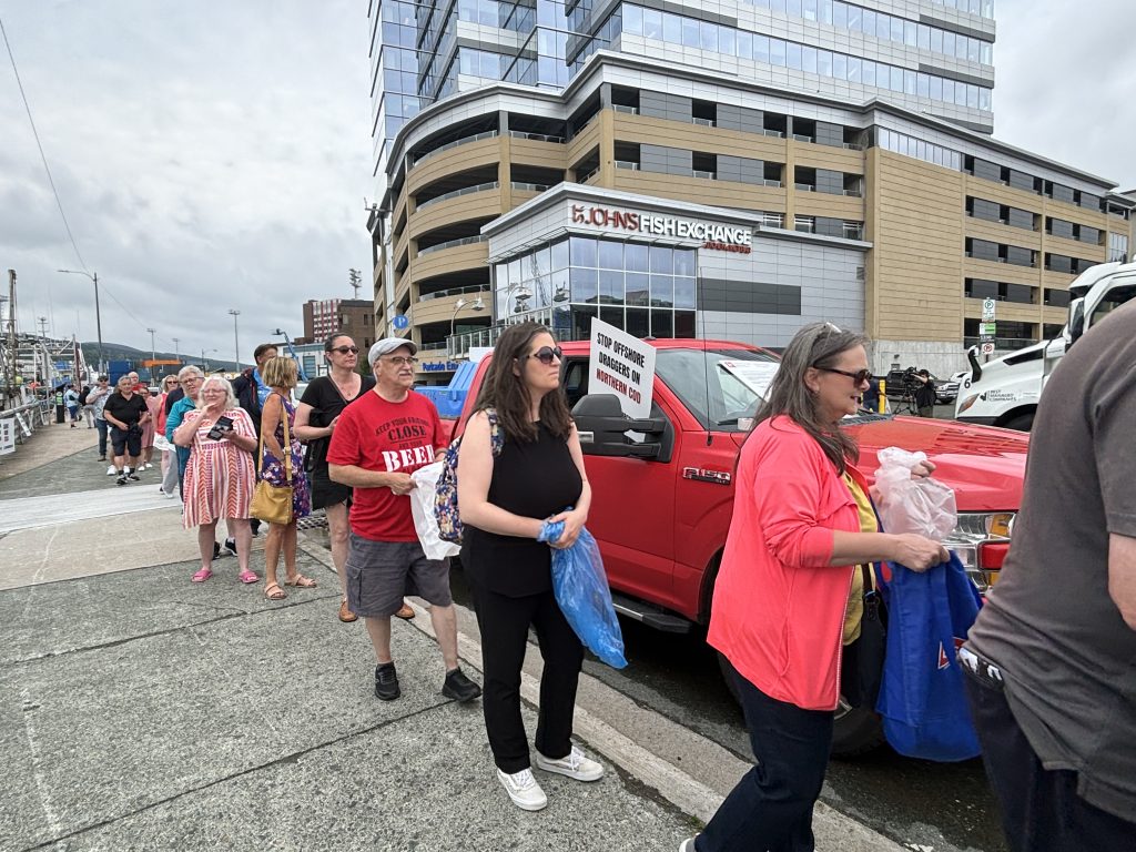 People stood in line along the St. John’s harbourfront, many of them holding containers and reusable bags too small for the catch they were about to be gifted.