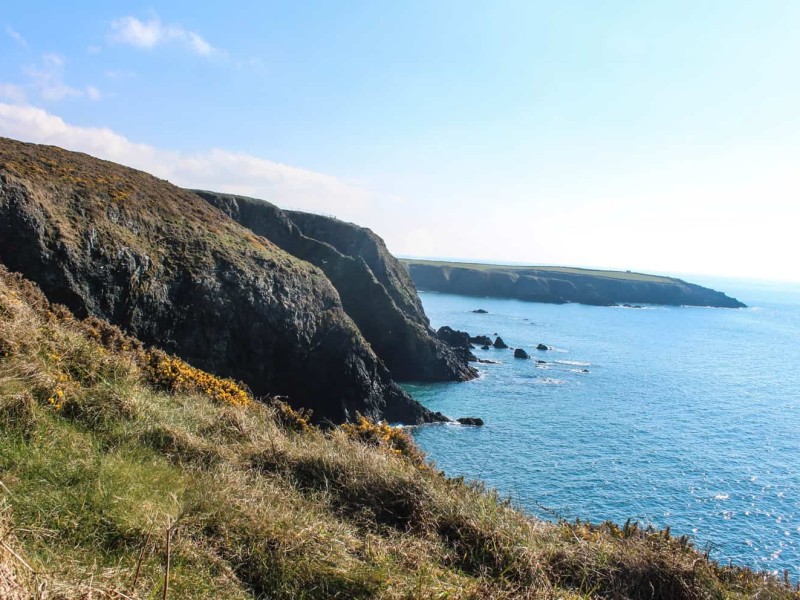 The coast of Newfoundland must have reminded Mr. Chearnley of his own Copper Coast back home. On my second day in Waterford, my photographer friend Scott awoke me bright and early urging that we take advantage of the sunshine and hit the road to an area that stretches from Tramore to Dungarvan. Our first stop was Kilfarrasy Beach, a brilliant coppery beach complete with sea stacks and sea arches. The whole place was entirely deserted – not another soul to interrupt the landscape or the crashing of waves. I might as well have been on the southern shore of Newfoundland.