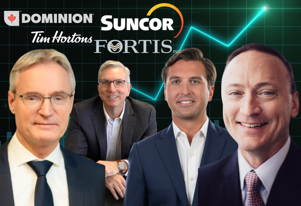 Familiar names include the CEOs of Dominion and Shoppers Drug Mart parent company Loblaw, Suncor, Air Canada, Tim Horton’s parent company Restaurant Brands International, Fortis, and ExxonMobil subsidiary Imperial Oil.