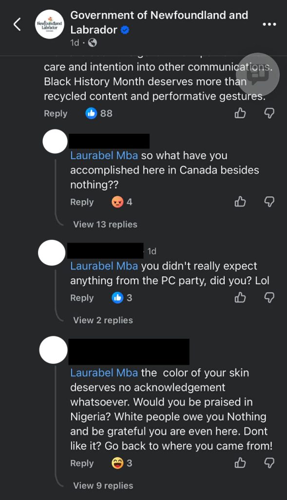 A St. John’s woman is speaking out after facing online backlash and racism for criticizing the provincial government’s lacklustre acknowledgement of Black History Month.