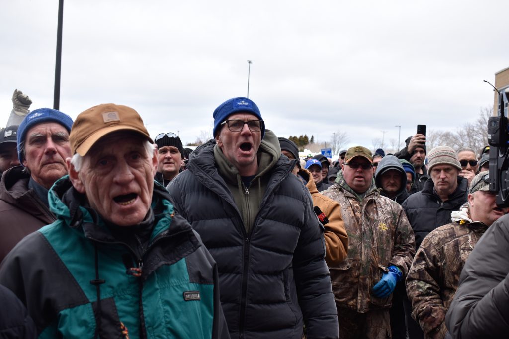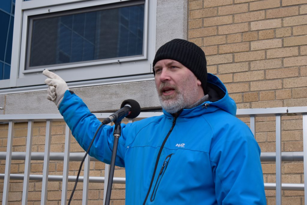 “We have an injured member and an injured police officer as well,” Fish Food and Allied Workers (FFAW) Secretary-Treasurer Jason Spingle announced to the crowd just after 12 p.m. Spingle said he “got a report that it looks like his hip was broken,” referring to the protestor.
