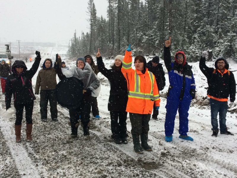 Once at the site, the land protectors shook hands with Nalcor Energy workers who had been flown in by helicopter in an effort by Nalcor to circumvent the blockade.