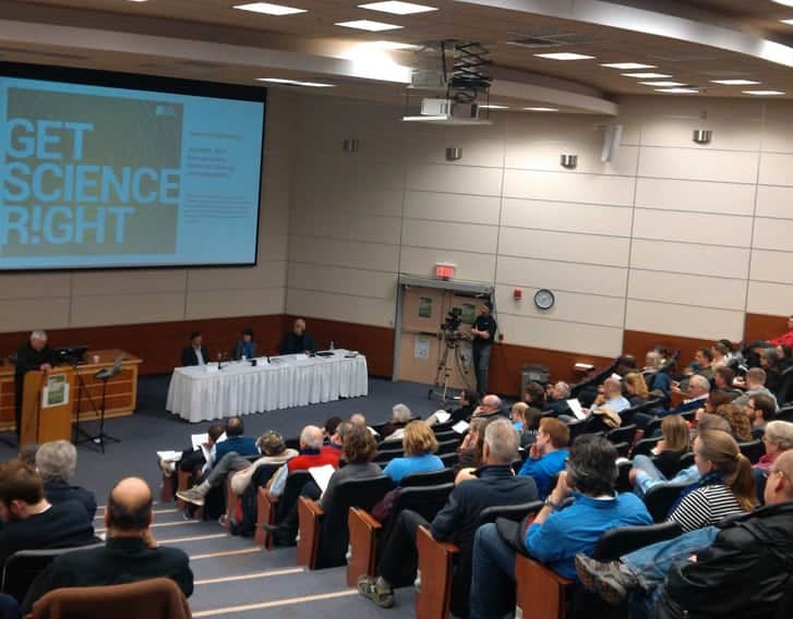 The ‘Get Science Right’ town hall was part of a national campaign of the Canadian Association of University Teachers (CAUT), which represents university faculty across the country. It was organized locally by Memorial University’s Faculty Association (MUNFA), which went to admirable lengths to make it a provincially accessible event. The event was web-casted live online, a Twitter feed was in active service throughout the evening, and participants from as far afield as Corner Brook were able to engage with questions and comments.